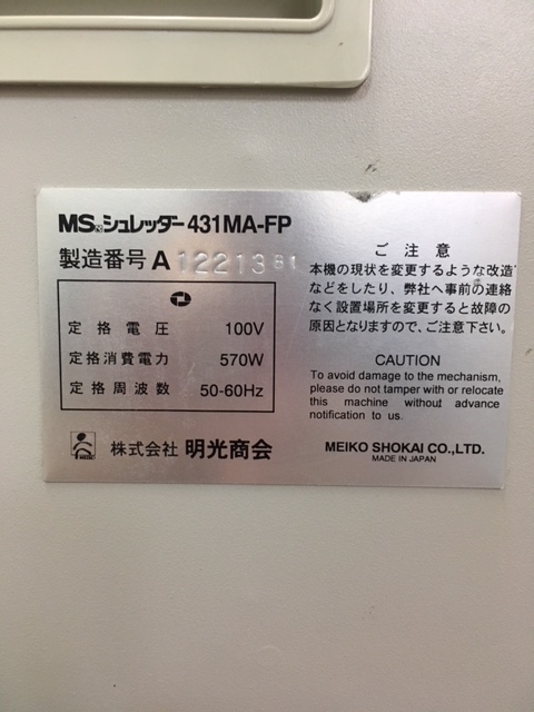 【1台入荷】|シュレッダー|明光商会|431MA-FP|日焼け有の為お安く!- 大阪・堺店