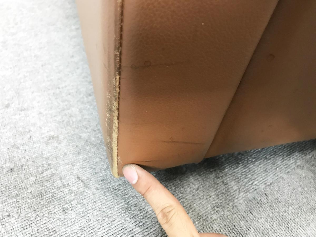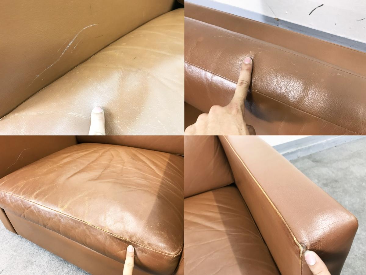 - 目立つ箇所ありソファの場合、破け、ホツレ、へたり、しわ等が多数または深い破け、ホツレ、へたり、しわ等一部ある。(例、背もたれ、肘かけ、座面等にある。)センタ>ーテーブルの場合、傷・凹みが多数または深い傷・凹みが一部ある。(例、天板、脚にある。)