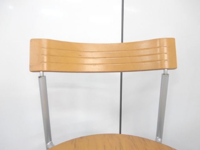 スチールの枠に座面と背もたれが木製の