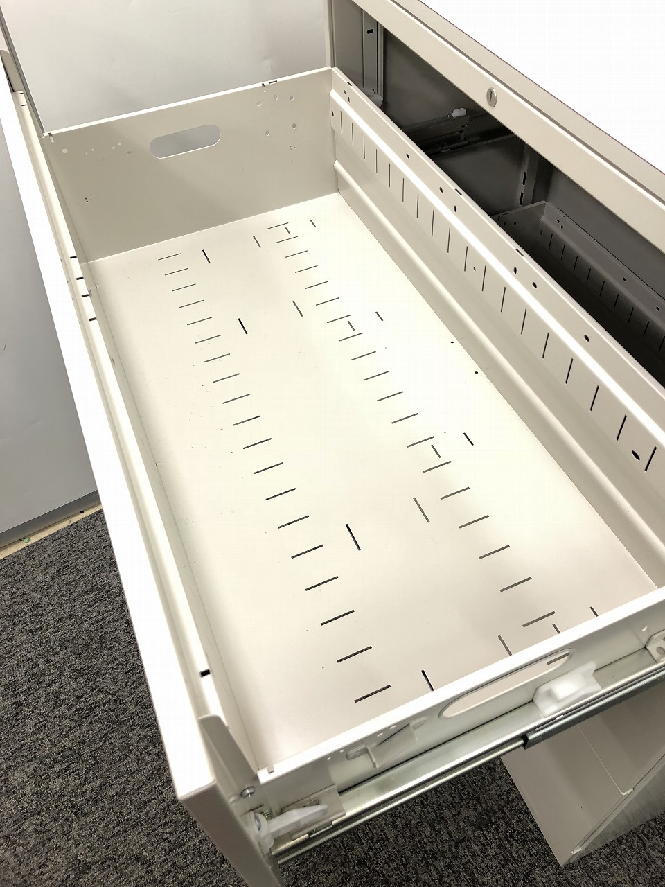 - 一部不具合ありそ引出の開閉不可、施錠不可、棚板無しといったの書庫の本来の効用を果たすための機能以外の一部が使用不可(例、扉、引出の開閉がしづらいなどがある。 )