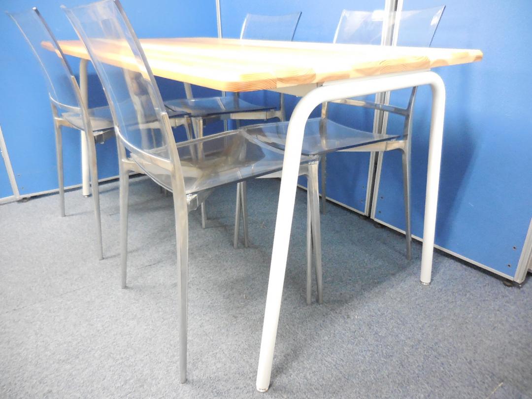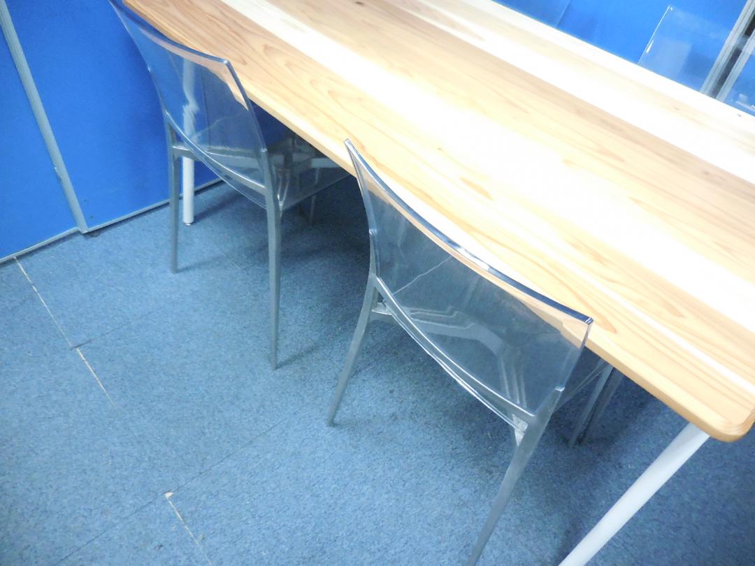 【4人用ミーティングセット】ナチュラルカラーのテーブルとクリアタイプのスタックチェア!スタイリッシュなおすすめ商品です!- 横浜本店