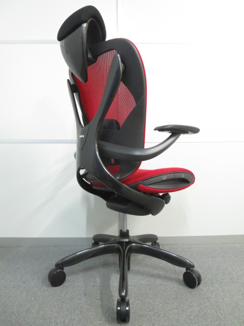 【レアな未使用品入荷!】■エクセアチェア ヘッドレスト付 ミラノレッド ■スパークリングブラックフレーム【フェラーリ、マセラティ、ポルシェを手掛けたデザイナーが設計】- 川崎店
