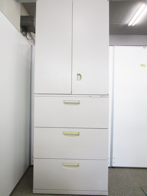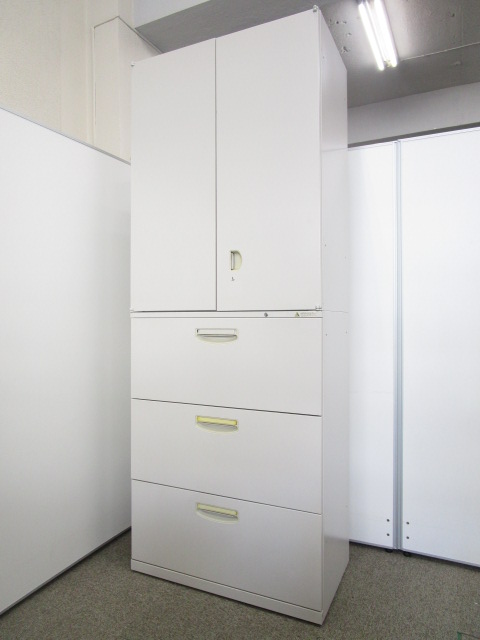 【スリムな書庫セット!!】オカムラ製 SAシリーズ ■スタンダードな観音開き+3段引出しの組み合わせ!!【今だけ4台揃います!!】- 池袋店