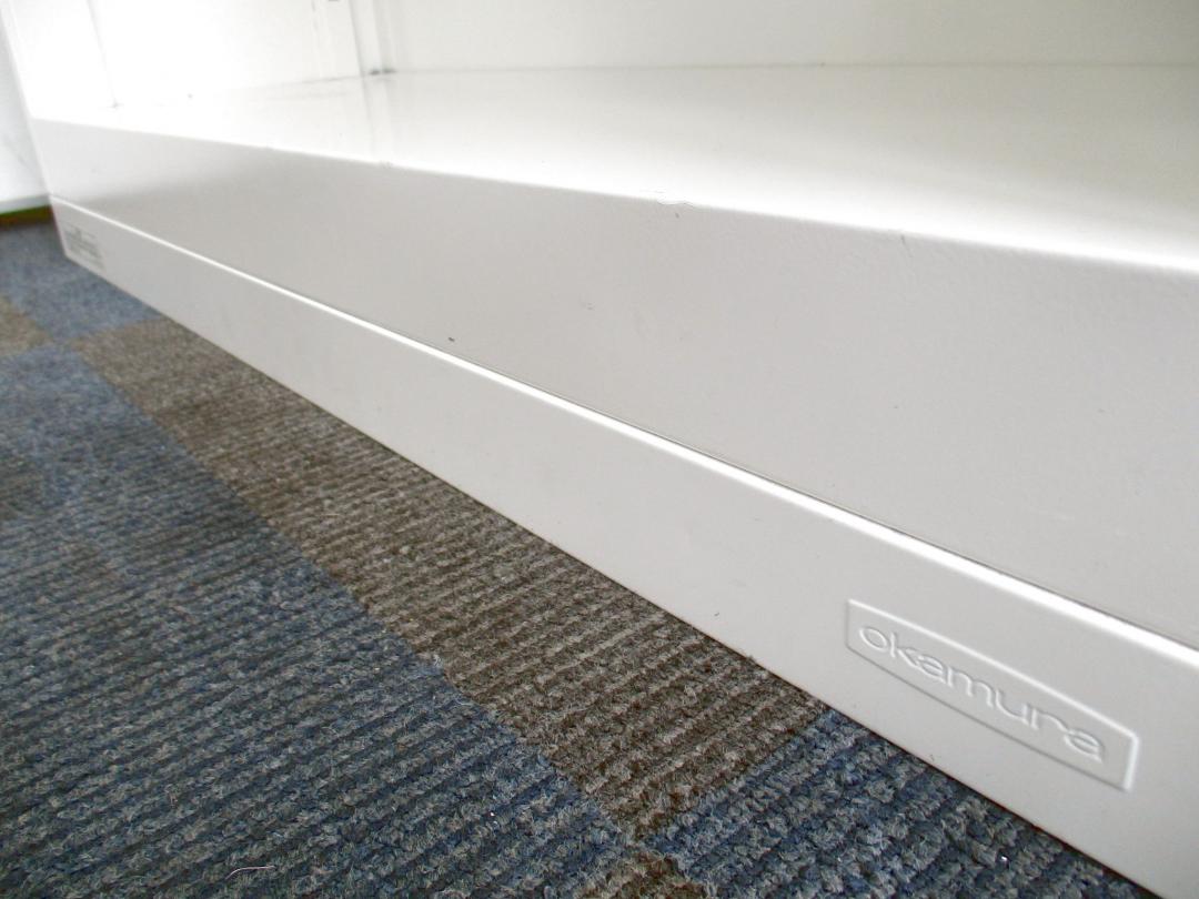 【オフィスの書類をスッキリ整理! 扉の無いタイプなので資料探しがラクラク!】■オカムラ(okamura)製 レクトライン(Rectline)シリーズ オープン書庫 ローキャビネット ■色:ホワイト ※扉外し商品のため外し跡がございます。