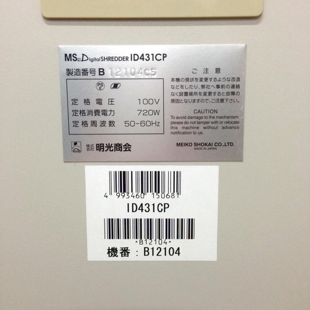 【中古】 IDシリーズ MS-ID431CP 明光商会 シュレッダー 230109