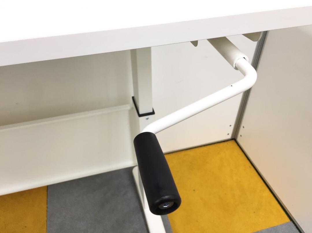 手動式で、天板右下のハンドルで上下昇降が可能。(680mm~1030mmの間で調整可能)