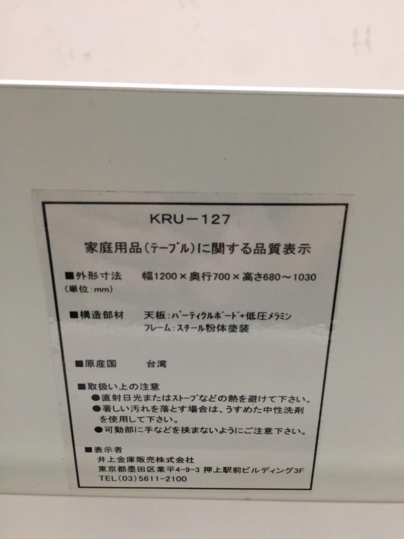 【新品】 KRUシリーズ KRU-127 井上金庫 昇降デスク 230170
