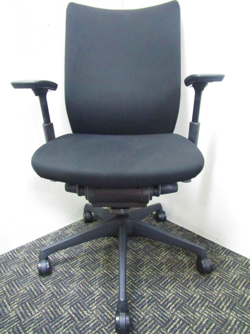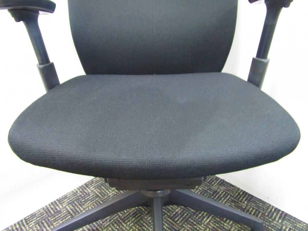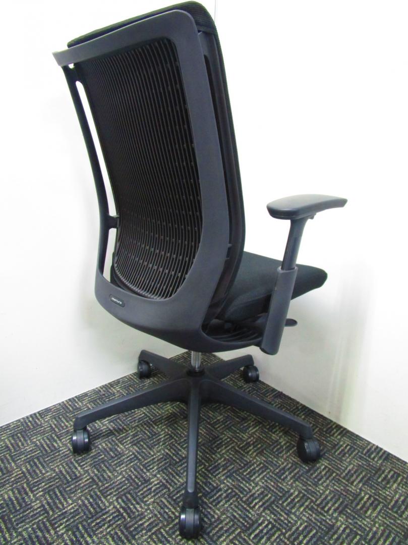 【人間工学に基づいた快適な座り心地!】■オカムラ(okamura)製 ヴィスコンテ(Visconte)チェア 肘付き ローバック ■背面プレーンタイプ ■可動肘 ■座面ブラック ×背面ブラック