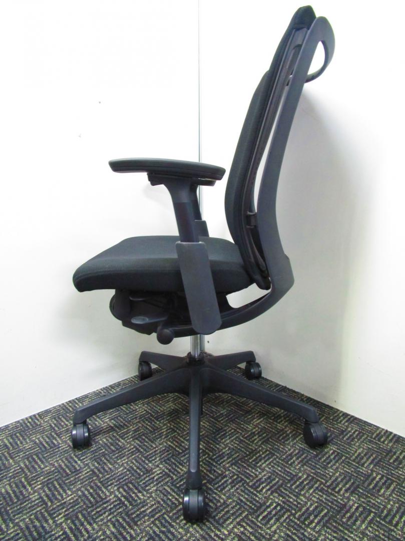 【人間工学に基づいた快適な座り心地!】■オカムラ(okamura)製 ヴィスコンテ(Visconte)チェア 肘付き ローバック ■背面ヌードタイプ ■可動肘 ■座面ブラック ×背面ブラック