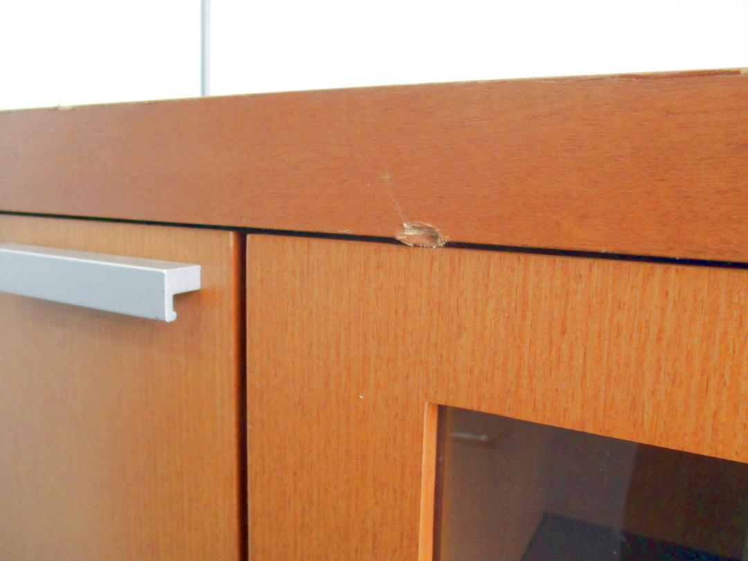 - 目立つ箇所あり傷・凹みが多数、深い傷・凹みが一部ある。(例、天板、正面、背部、サイド部分にある。)