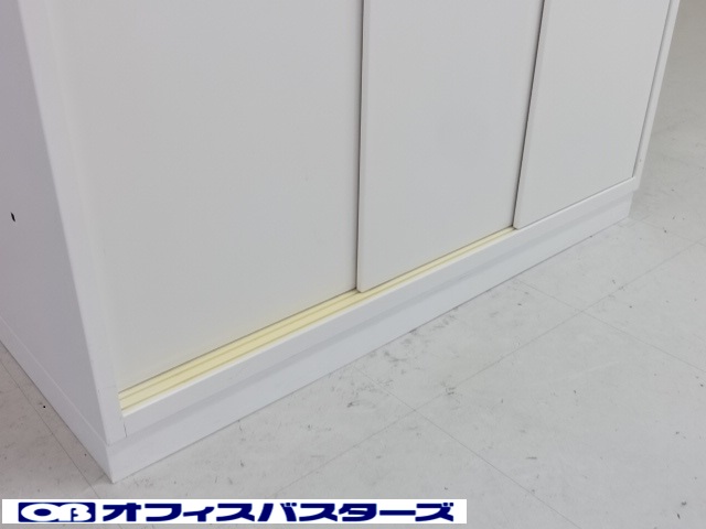 【スライド引き戸だから開閉スペースに困らない!】■コクヨ(KOKUYO)製 エディア(EDIA)シリーズ 2枚引き違い書庫 ローキャビネット シリンダー錠 天板付き ベース付き ホワイト シリンダー錠 収納 中古家具 格安 福岡 オフィス家具 九州最大級《オフィスバスターズ福岡博多店は、福岡を拠点として、日本全国へ中古オフィス用品・オフィス家具を提供しております》