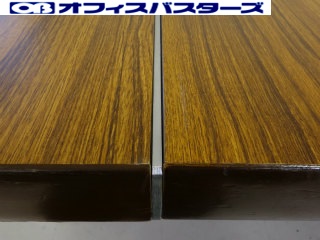 - あり黄ばみ・変色が広い範囲にうっすらある、または濃い黄ばみ・変色が一部ある。(例、天板、幕板、棚板、サイド部分、脚部等にある。)