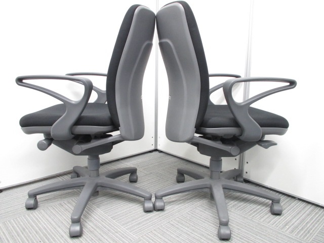 【2脚セット】[状態良好]オフィスチェア 肘付き ハイバックタイプ ブラックカラーで落ち着いた雰囲気- 在庫数