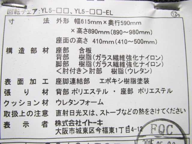 - オフィスチェア(椅子) 肘付ローバックチェア