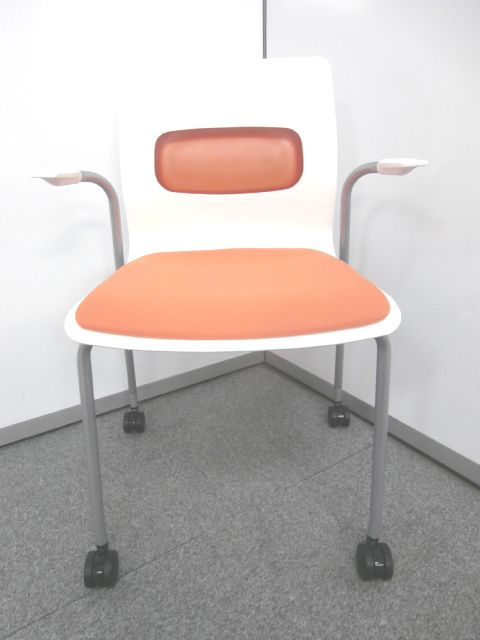 コクヨ製のオレンジカラーのスタッキングチェアになります。