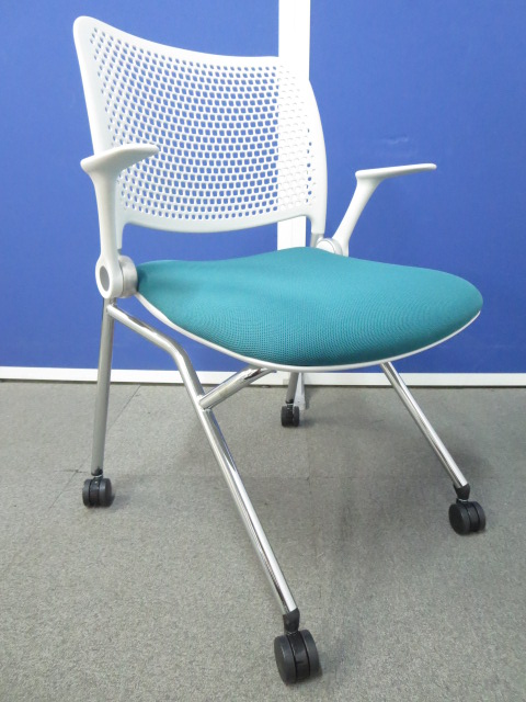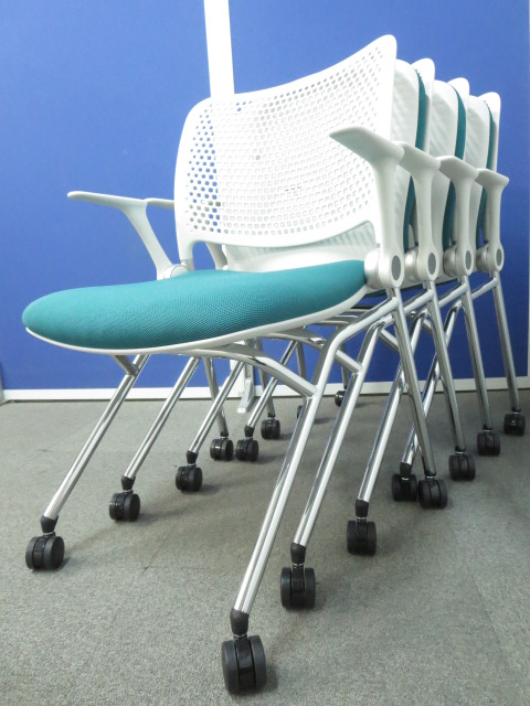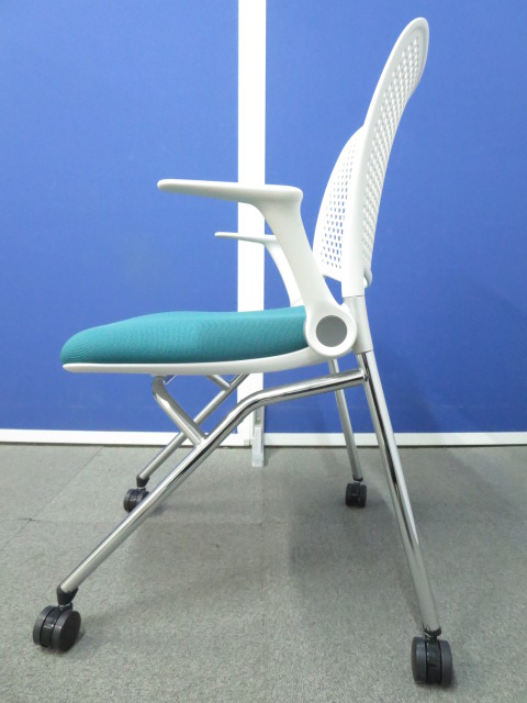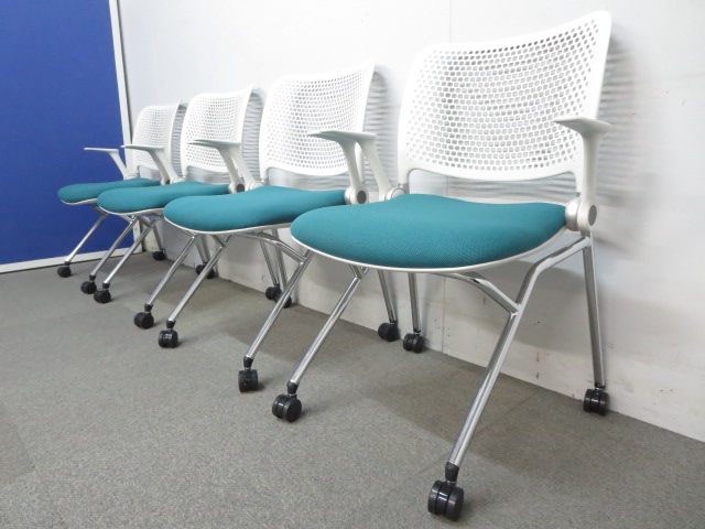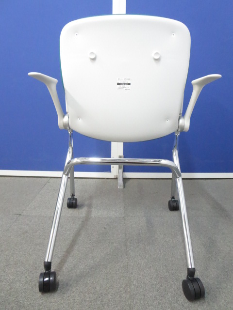 【お買い得な未使用品!】■ネスティングチェア4脚セット グリーン ■キャスター付でスムーズな移動が可能です!- 川崎店