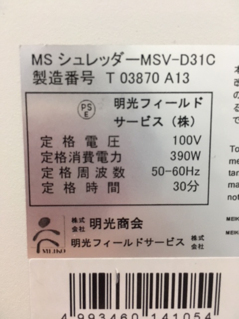 【中古】 MSシリーズ MSV-D31C 明光商会 シュレッダー 230732