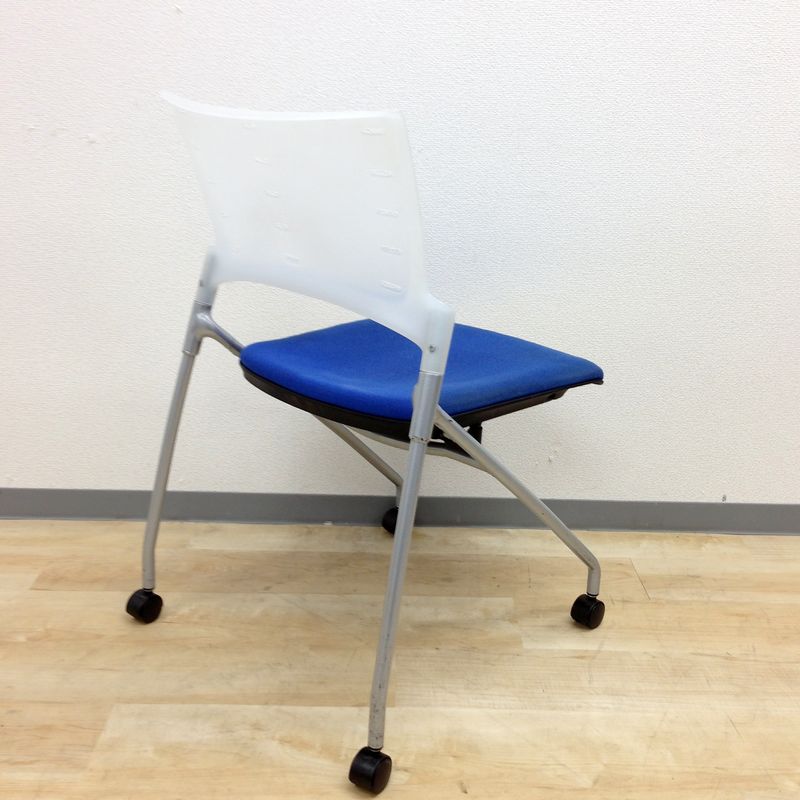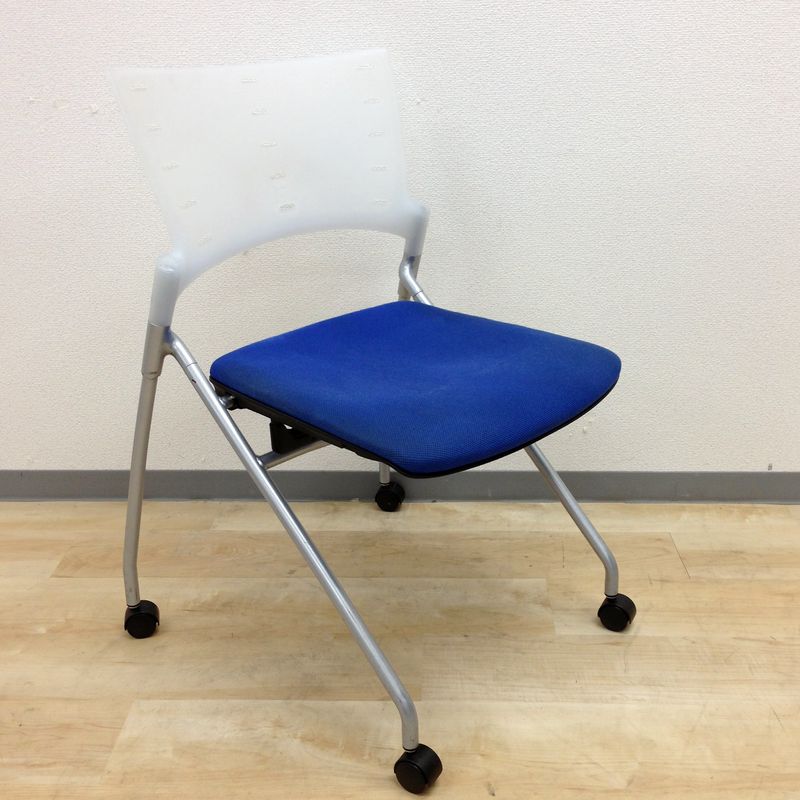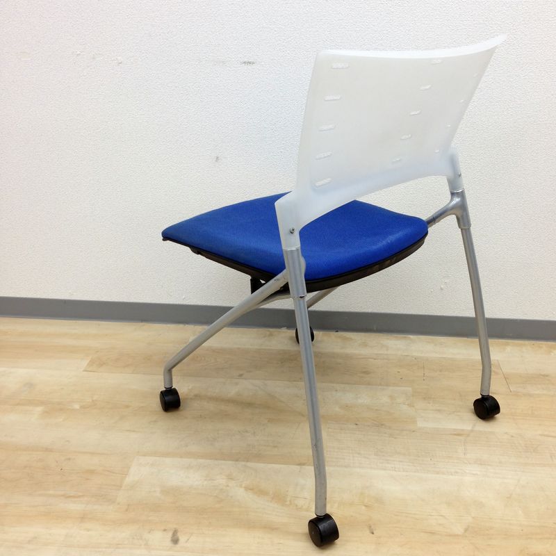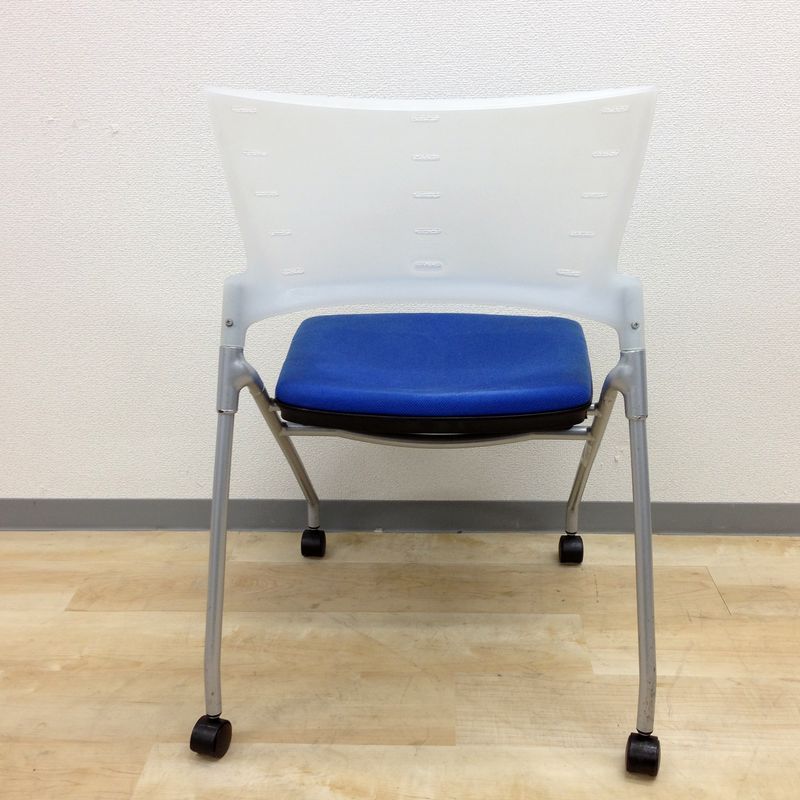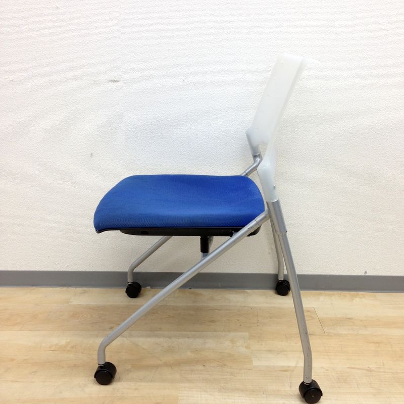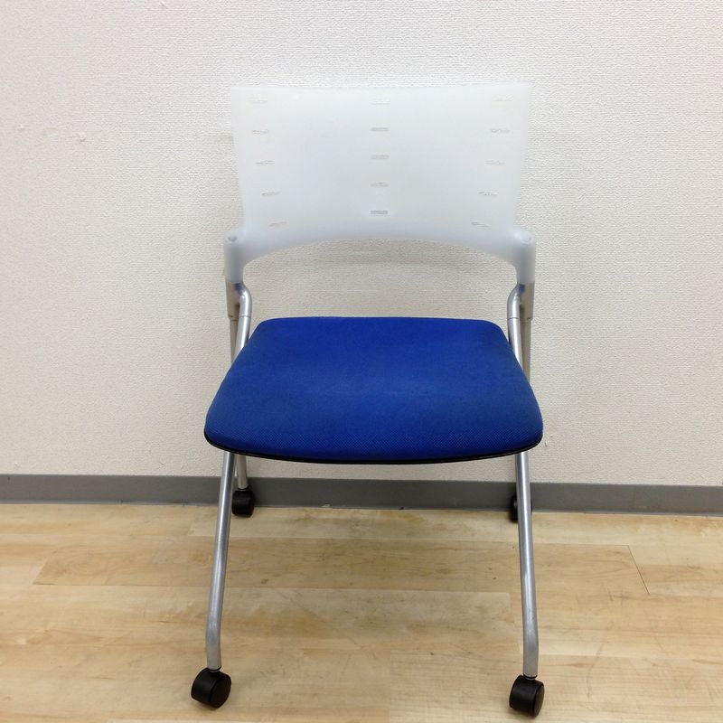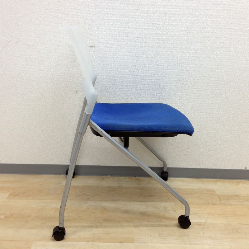 【定価6万円】【ソフトベンディングシェルが背を優しく受け止める!】■イトーキ(ITOKI) マノスチェア(MANOSS) 肘無し スタッキングチェア ミーティングチェア ■背パッド付 ■キャスター脚 ■ブルー