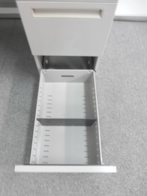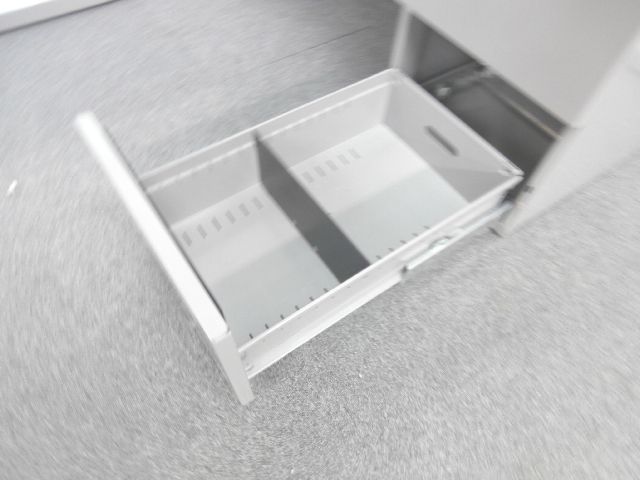 - シンプルながらも使いやすい工夫があります。ロックは、一度の施錠ですべての引出しの鍵がかかるオールロック機構。