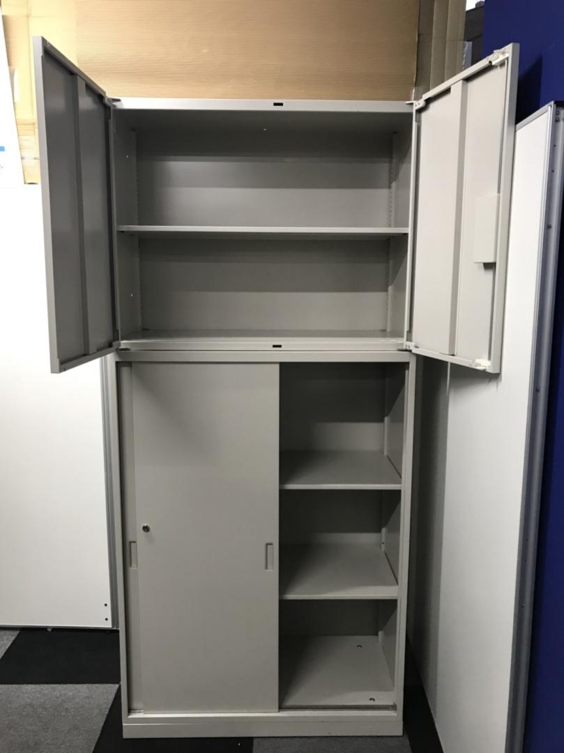 H1800mm前後の圧迫感無い人気書庫入荷!もうすでに3セット売れております!【ライトスモーク】【引き戸+両開き】- 在庫数
