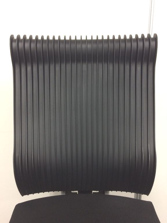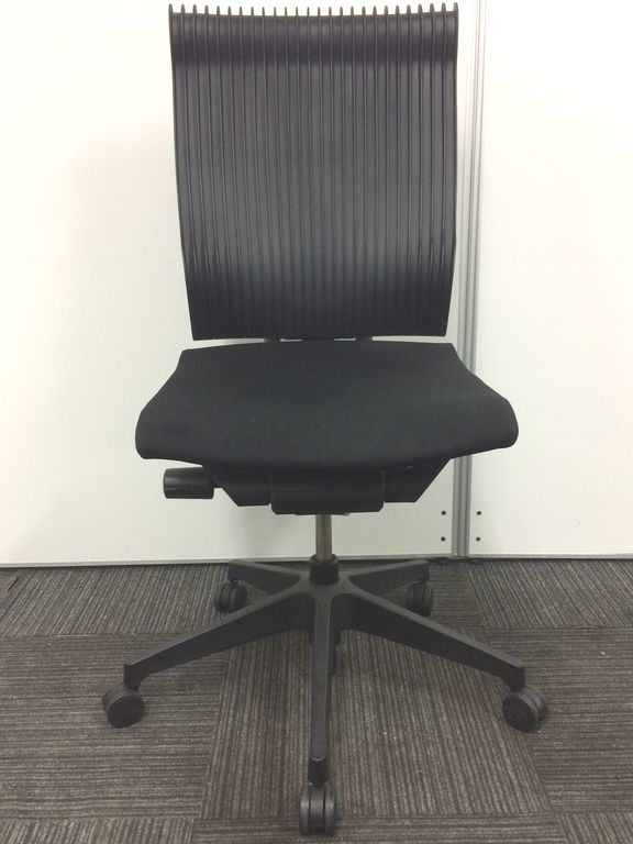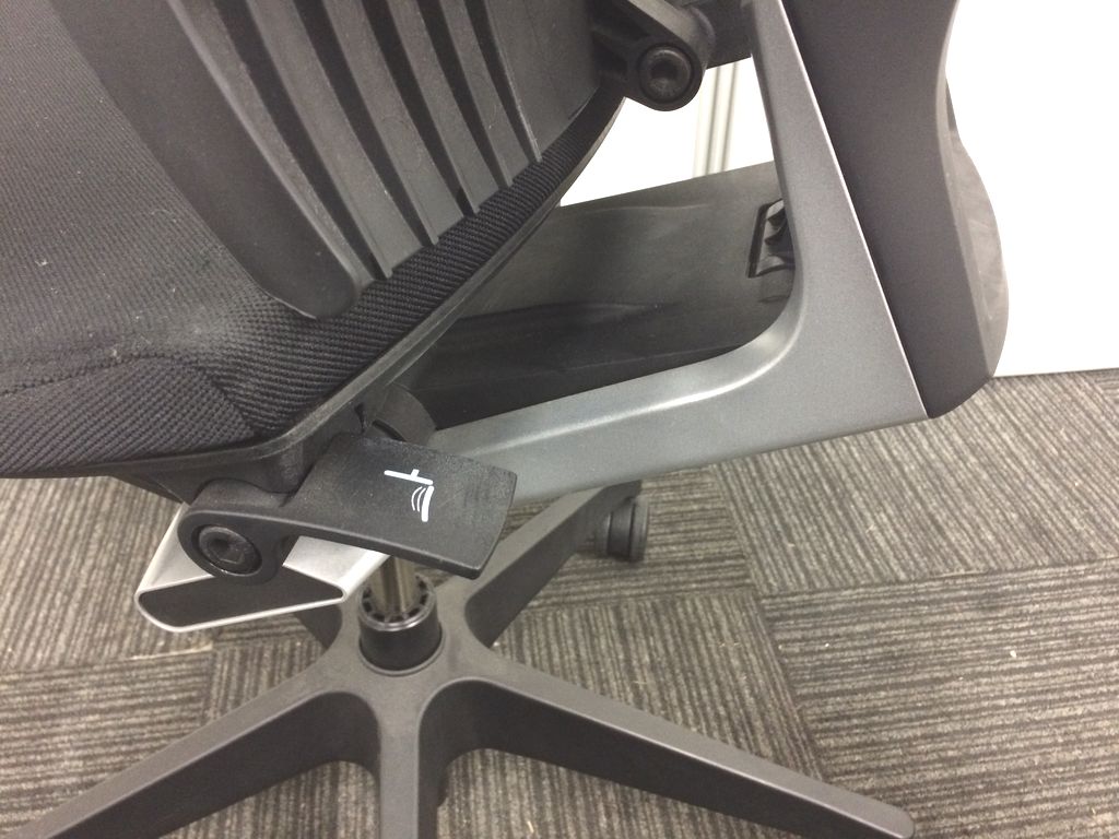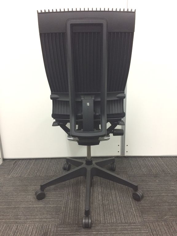 見た目は少し硬そうに見えるエラストマー素材ですが、座ってみると程よいしなり具合のやわらかな座り心地で、背中が痛くなるようなことはまるでありません。面ではなく線で支えることで、背面の通気性の良さは抜群です。