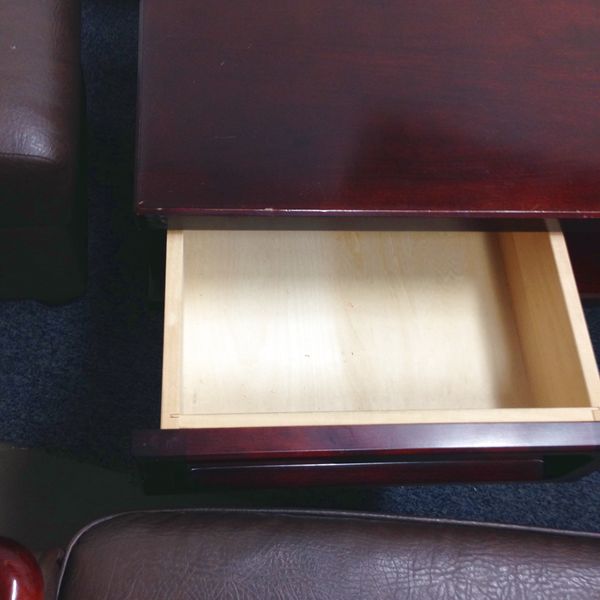 - 若干ありソファの場合、破け、ホツレ、へたり、しわ等が一部ある。(例、背もたれ、肘かけ、座面等にある。)センターテーブルの場合、傷・凹みが一部ある。(例、天板、 脚にある。)