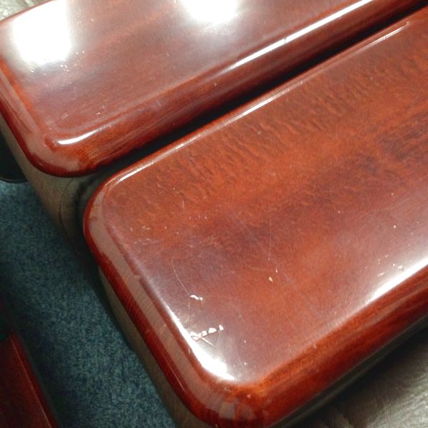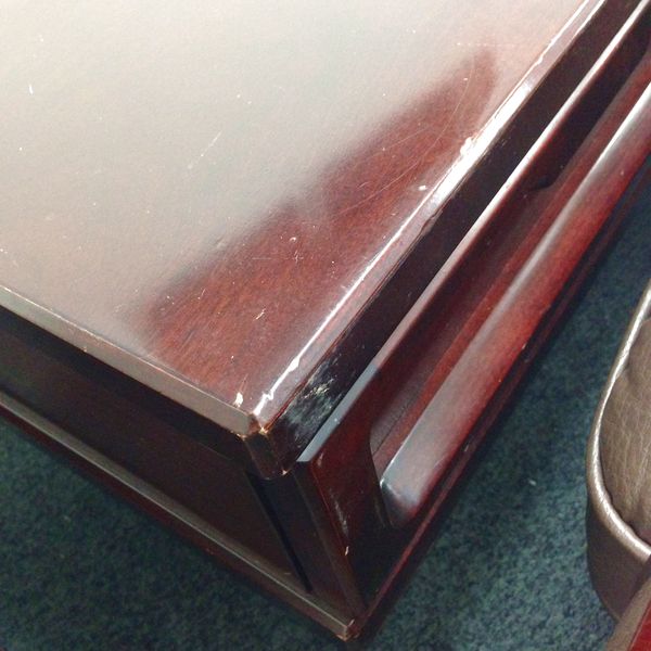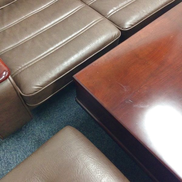 - あり黄ばみ・変色が広い範囲にうっすらある、または濃い黄ばみ・変色が一部ある。(例:三人用ソファ、二人用ソファ、一人用ソファの場合、背もたれ、肘かけ、座面等、 センターテーブルの場合、天板、脚にある。)