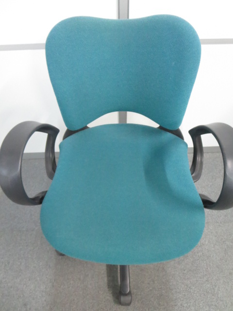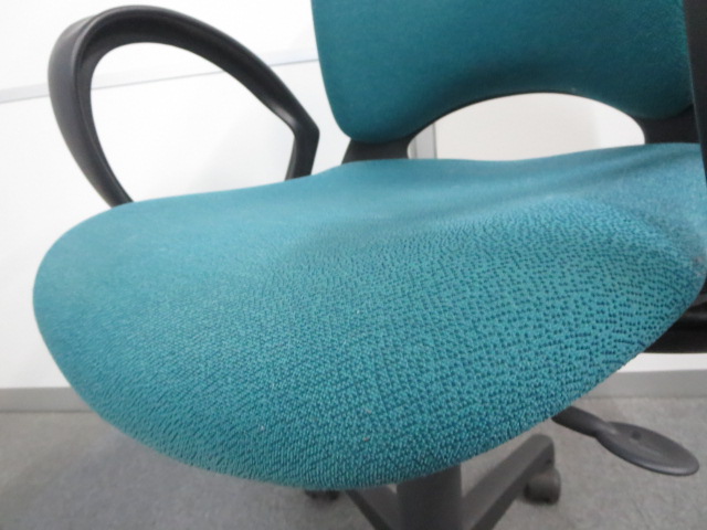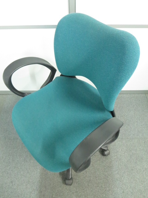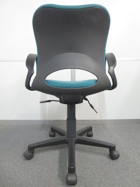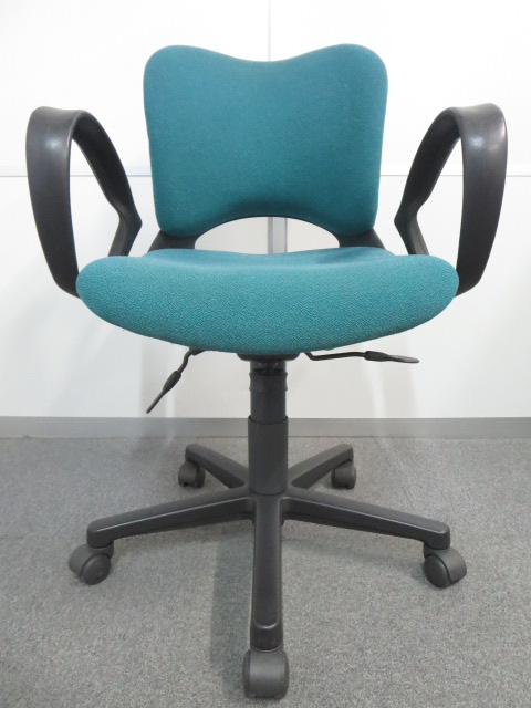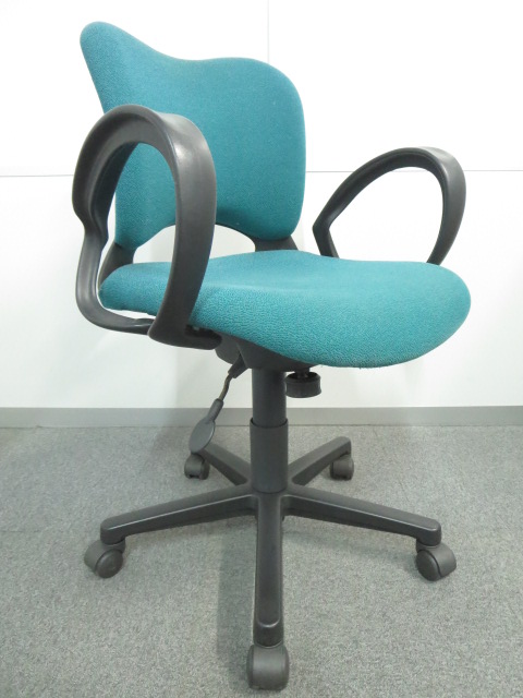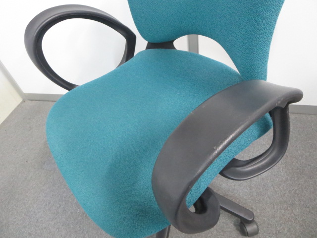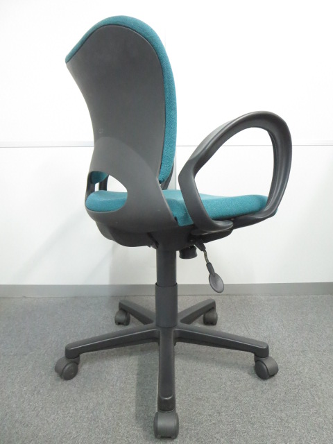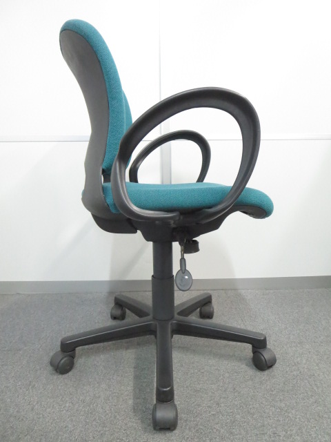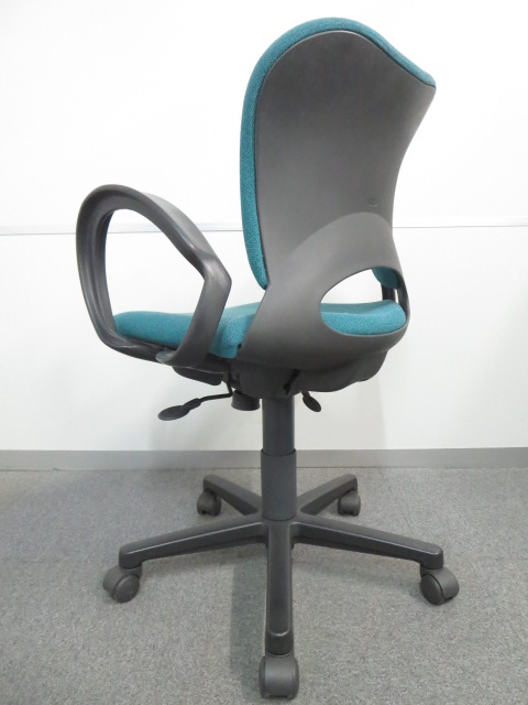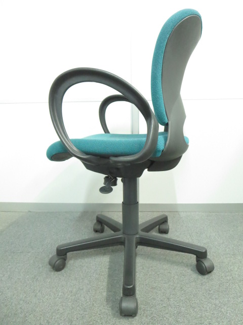 【前傾姿勢で集中デスクワーク!】■プラス製 オーバルチェア シーグリーン ループ肘タイプ【B】- 川崎店