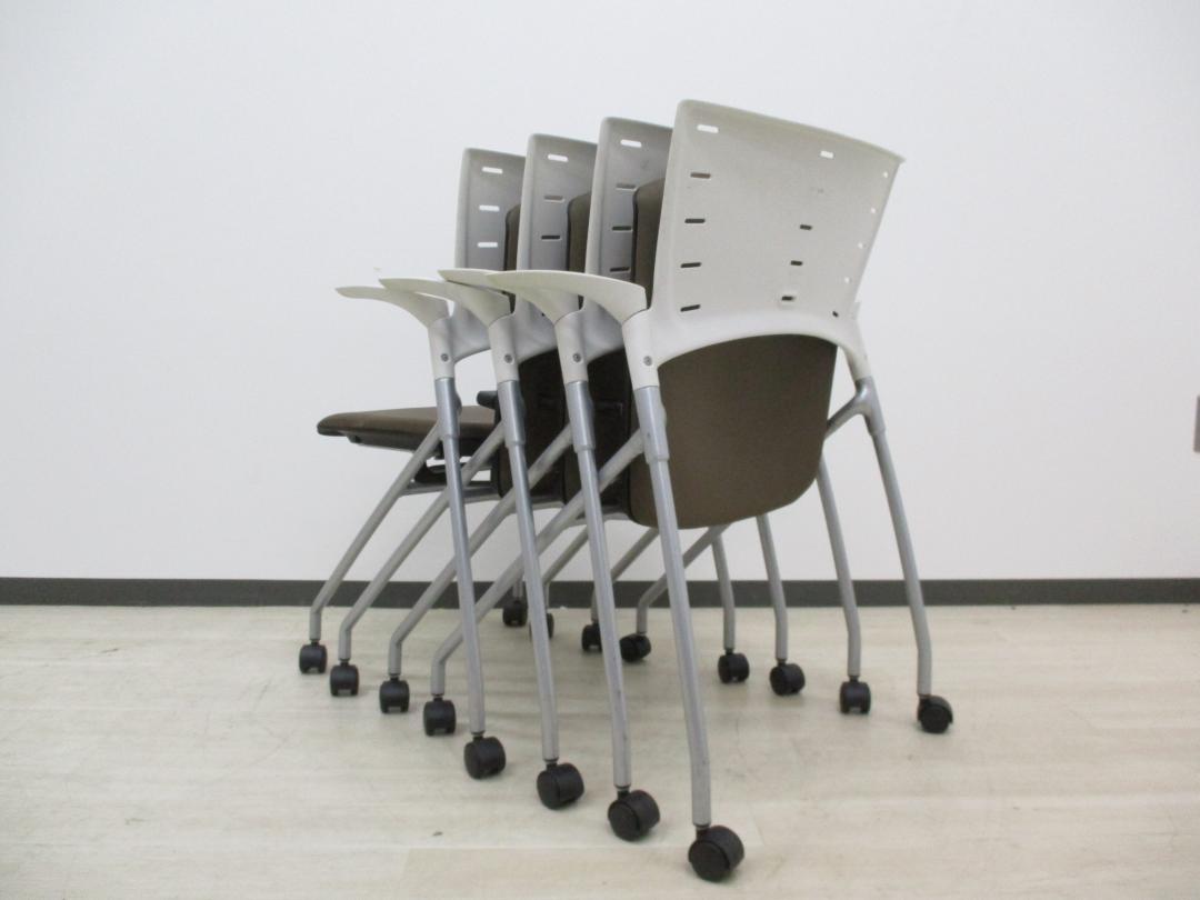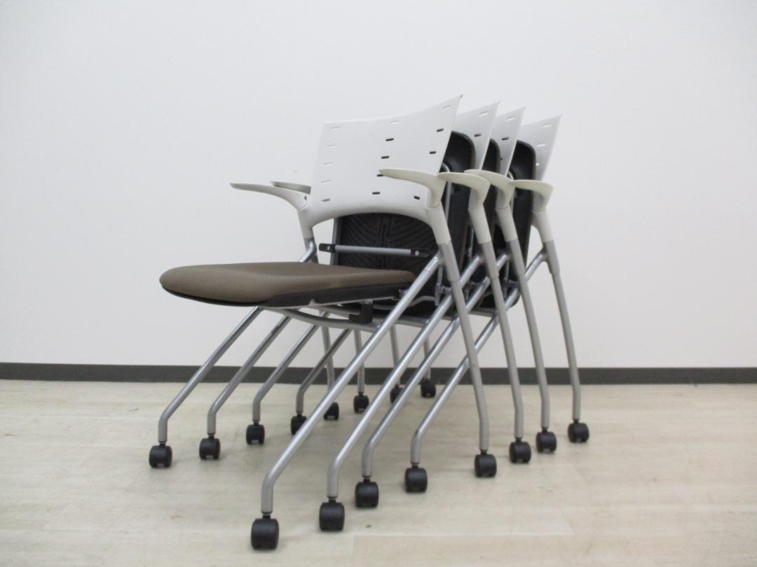 【13脚限定】■人気シリーズオフィスがおしゃれになるブラウン色の入荷です!デザイン性、座り心地の良いミーティングチェア‼キャスター付き- つくば店