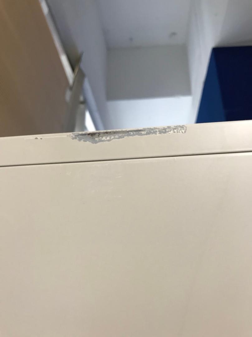 - 目立つ箇所あり傷・凹みが多数、深い傷・凹みが一部ある。(例、天板、正面、背部、サイド部分にある。)