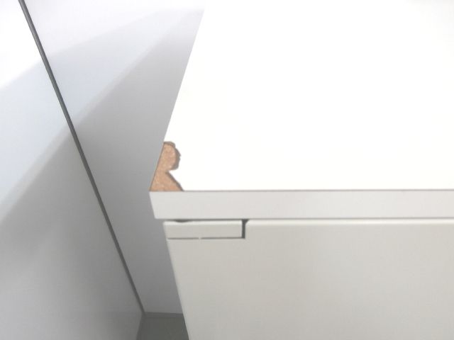 - かなり強い濃い黄ばみ・変色が商品全体にある。(例、天板、正面、背部、サイド部分にある。)