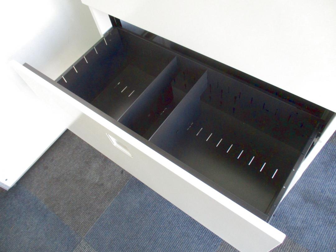 【使いやすさで選ぶならコレ!大容量の三段キャビネット】■オカムラ(Okamura)製 レクトラインシリーズ(Rectline) 3段ラテラル書庫 ローキャビネット ■天板付き ■シリンダー錠 ■ホワイト