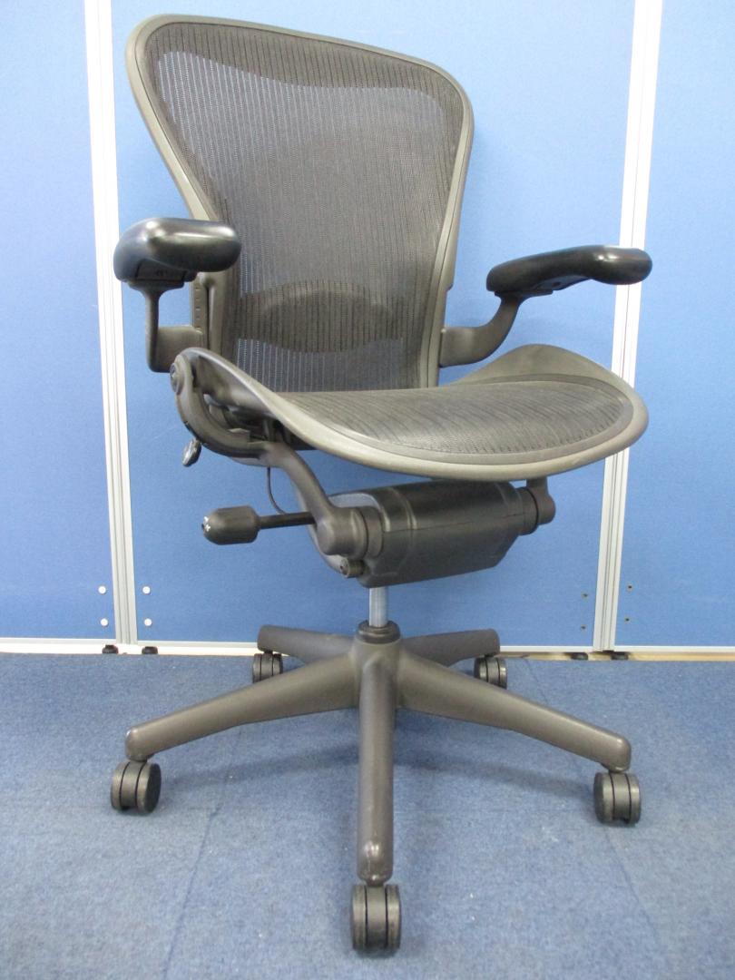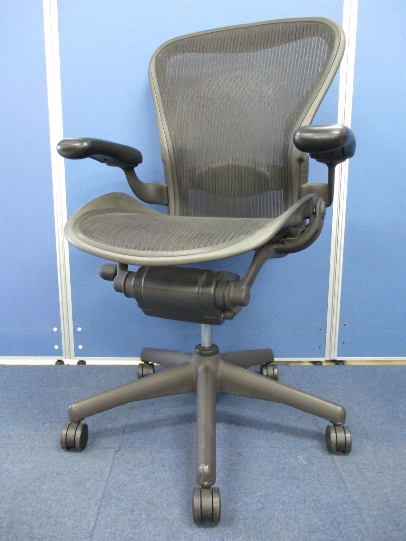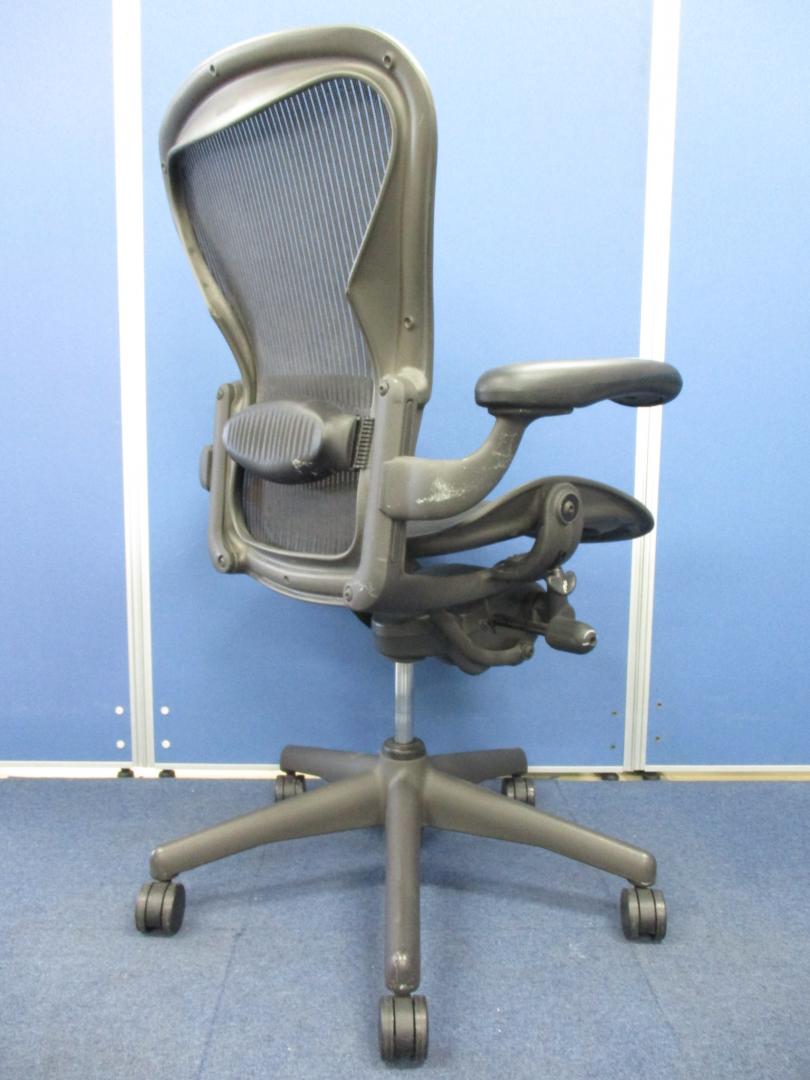 【★状態イマイチのためお安く!】■ハーマンミラー製 アーロンチェア Bサイズ 固定肘 ※キズあり・ランバーサポート無・昇降ガス圧弱めのためお安く!【訳あり特価品】