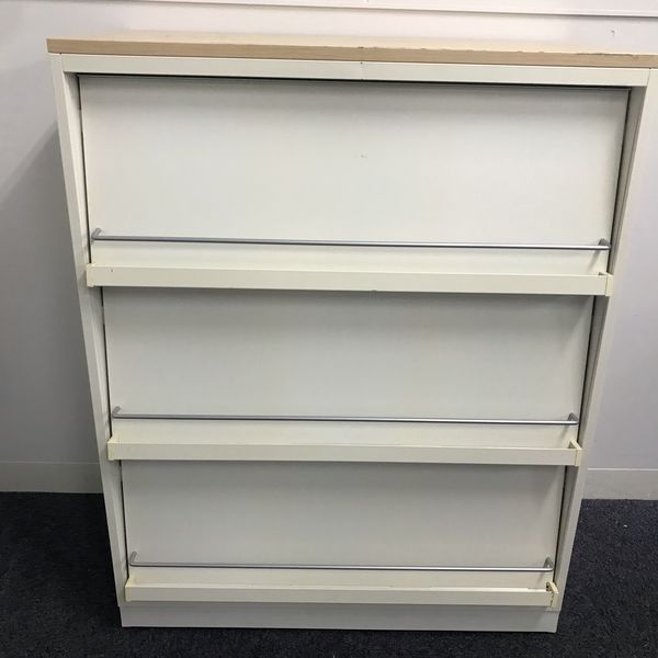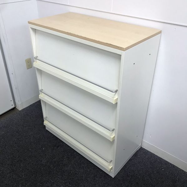 【中古品では珍しい!コクヨ製・3段雑誌架タイプ!】【雑誌・パンフレッド等々、扉を開けると収納でき、オフィスの雰囲気を変えたい方におすすめ!!】■コクヨ(KOKUYO) エディアシリーズ 雑誌架 3段 ローキャビネット ■本体ホワイト【2506】弊社使用欄【A01018642】