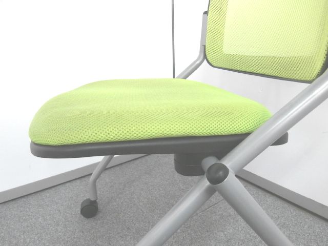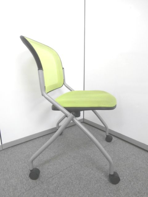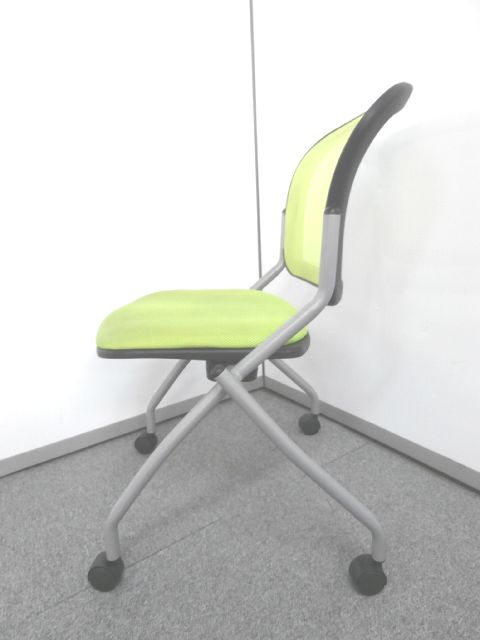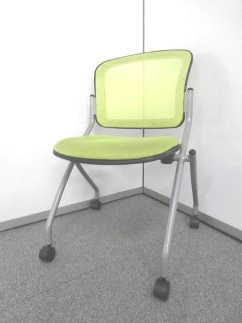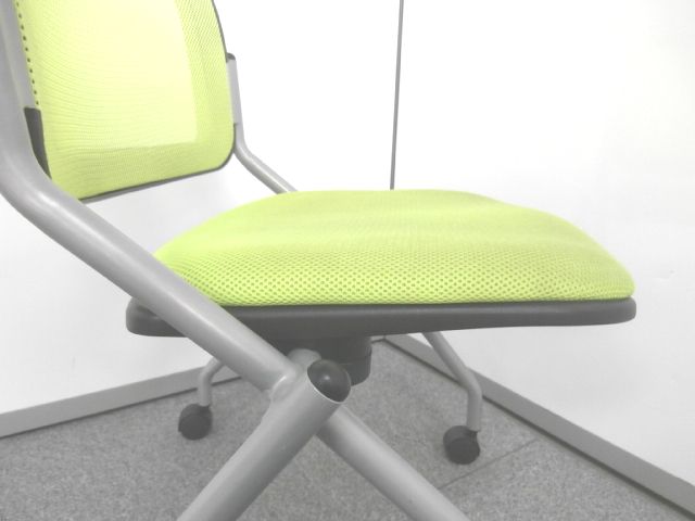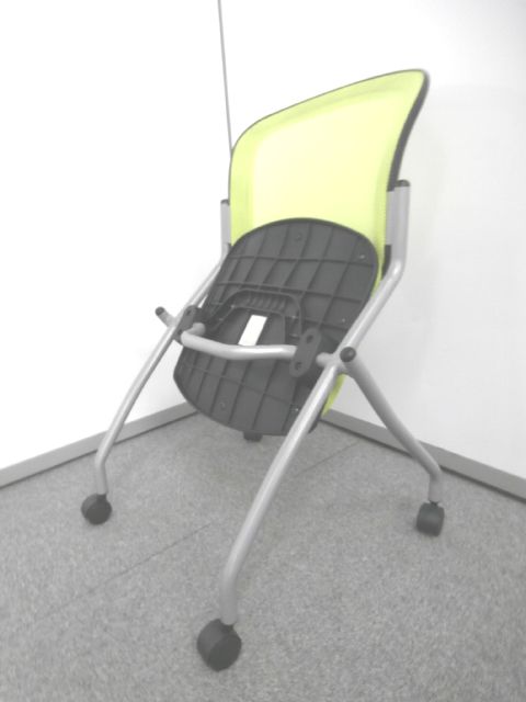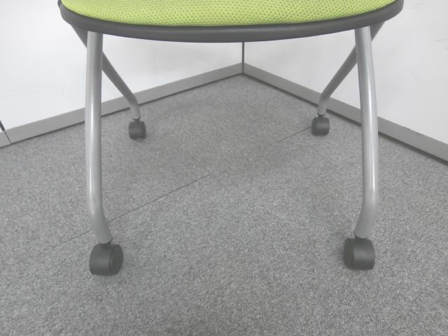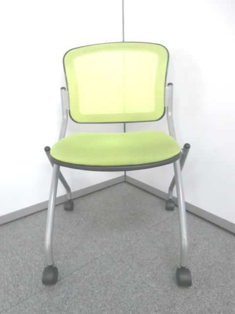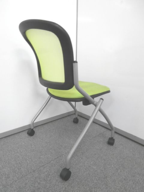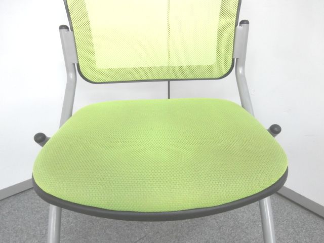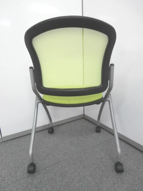 【鮮やかなライトグリーン背もたれメッシュのネスティングチェア】■ネスティングチェア ■ライトグリーンカラー ■メッシュ- 仙台店