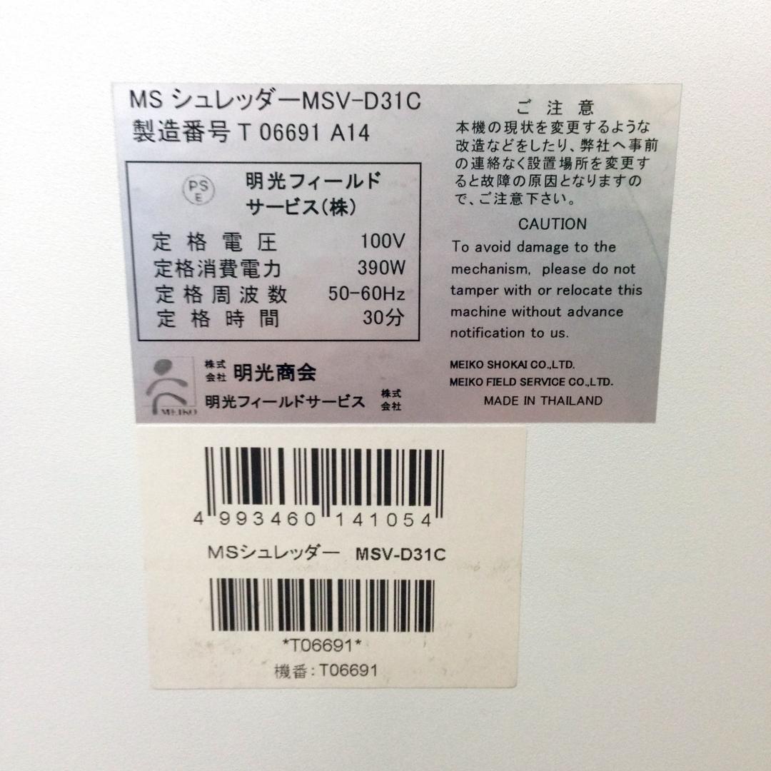 【中古】 MSV-D31C 明光商会 シュレッダー 231398