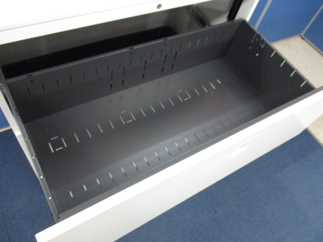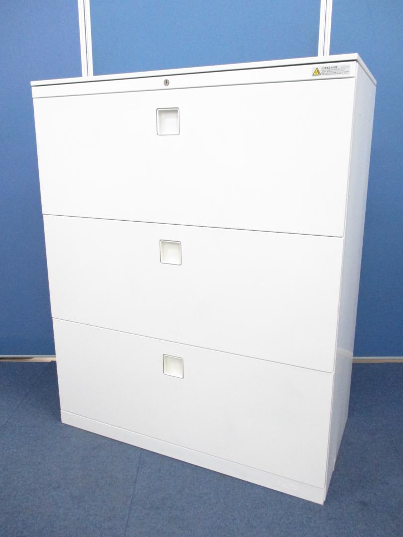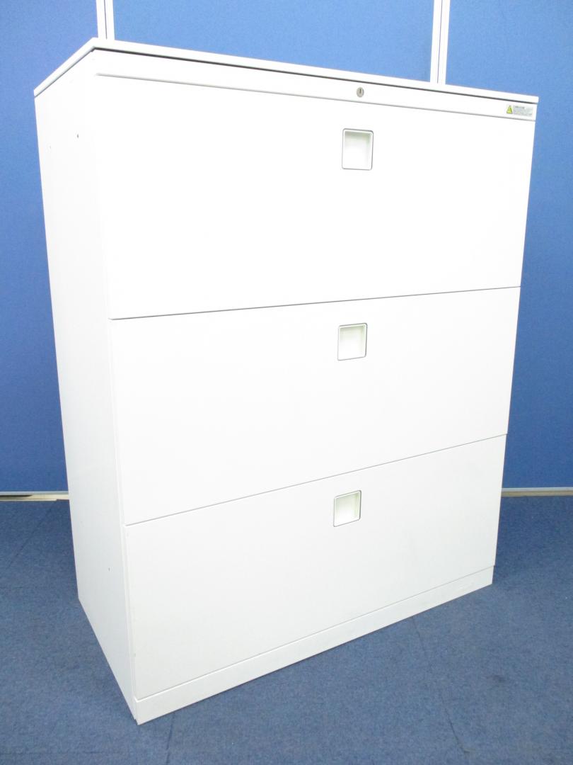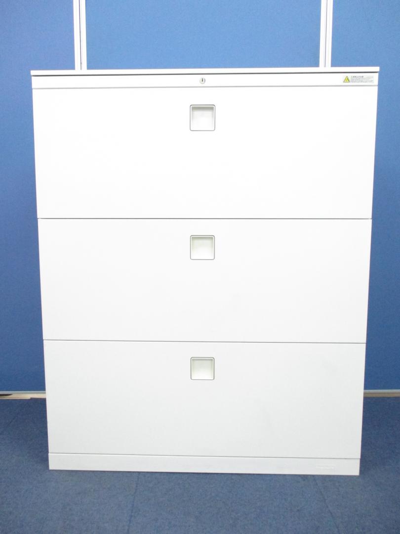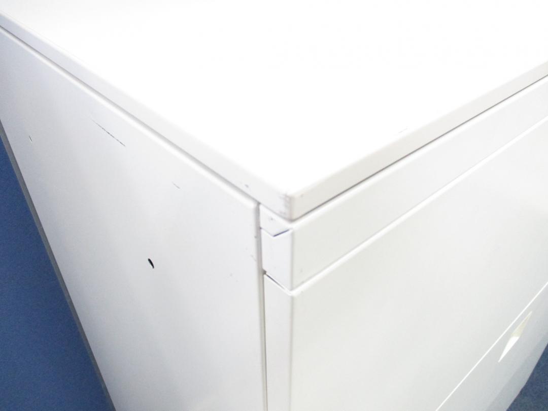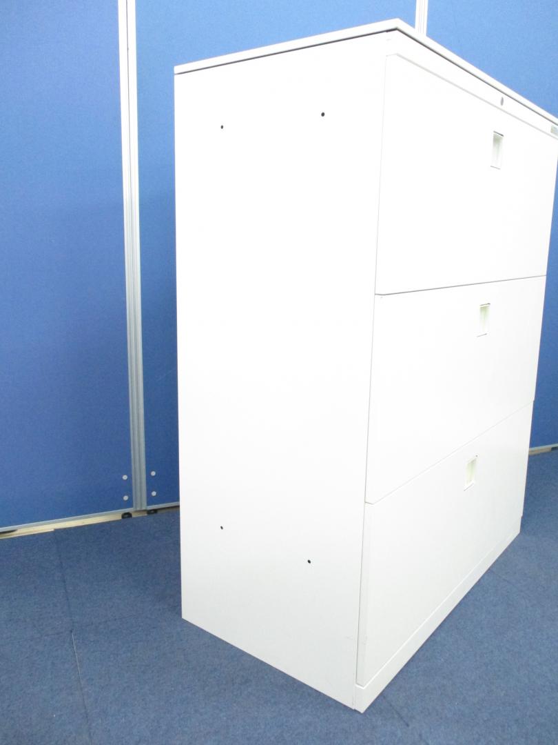 ■オカムラ(okamura)製 レクトラインシリーズ 3段ラテラル ローキャビネット ■天板・ベース付 ■シリンダー錠 ■ホワイト ■収納力抜群【弊社使用欄:A01037187】【SN】