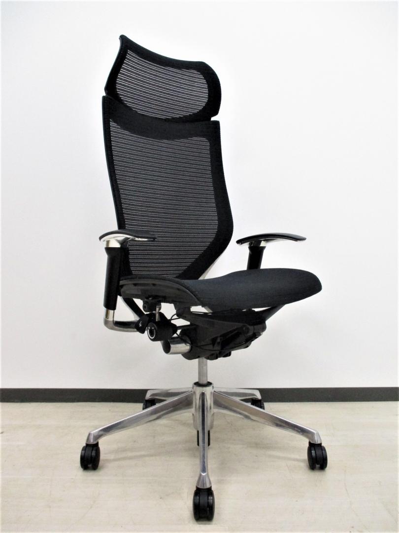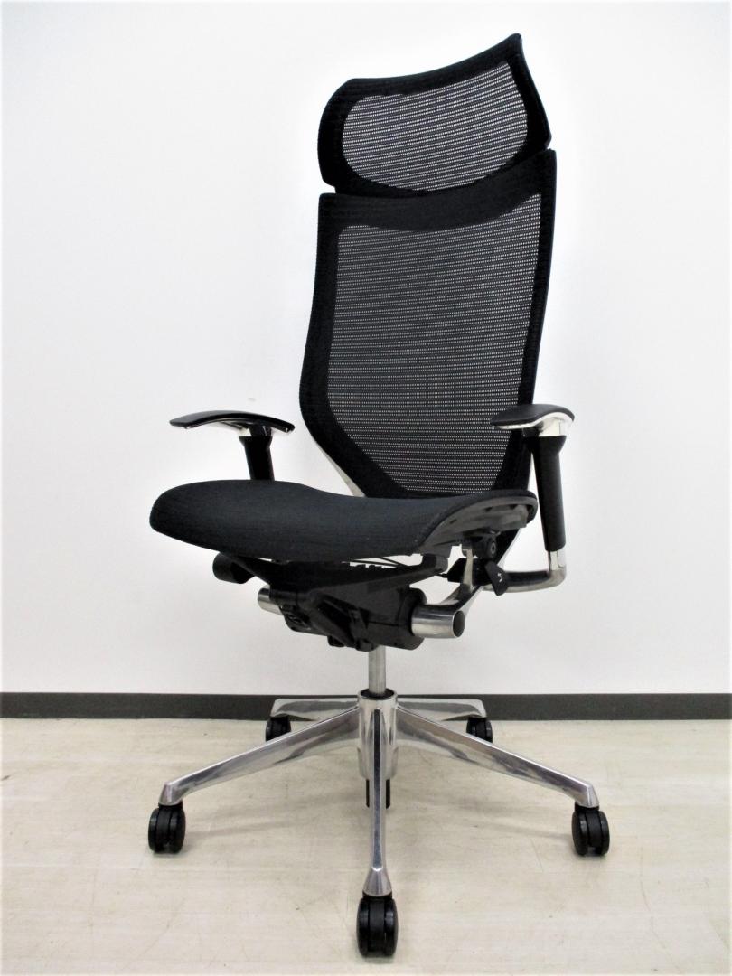 【オフィスの執務室、会議室におすすめ!】■オカムラ(okamura)製 バロン(Baron)チェア 肘付き ハイバック ■背・座面メッシュ ■可動肘 ■ヘッドレスト付き ■ブラック【硬めの座面が大人気!国産メッシュチェアの代表格!】