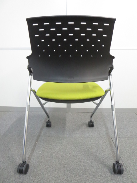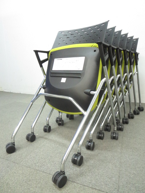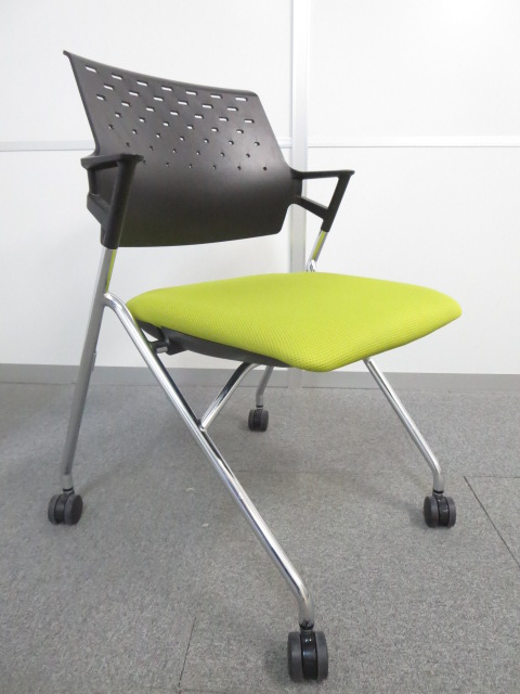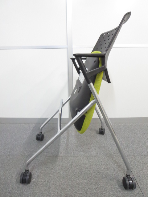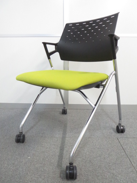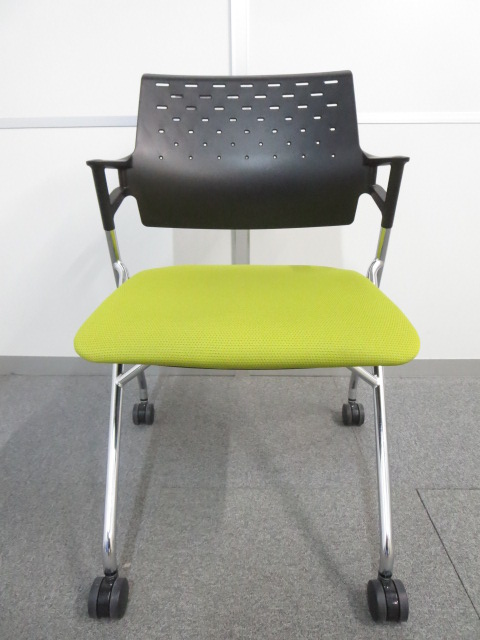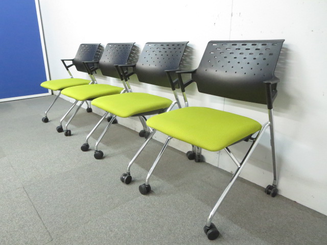 【お得な4脚セット!】■コクヨ製 ネスティングチェア 肘付 ライトオリーブ- 川崎店