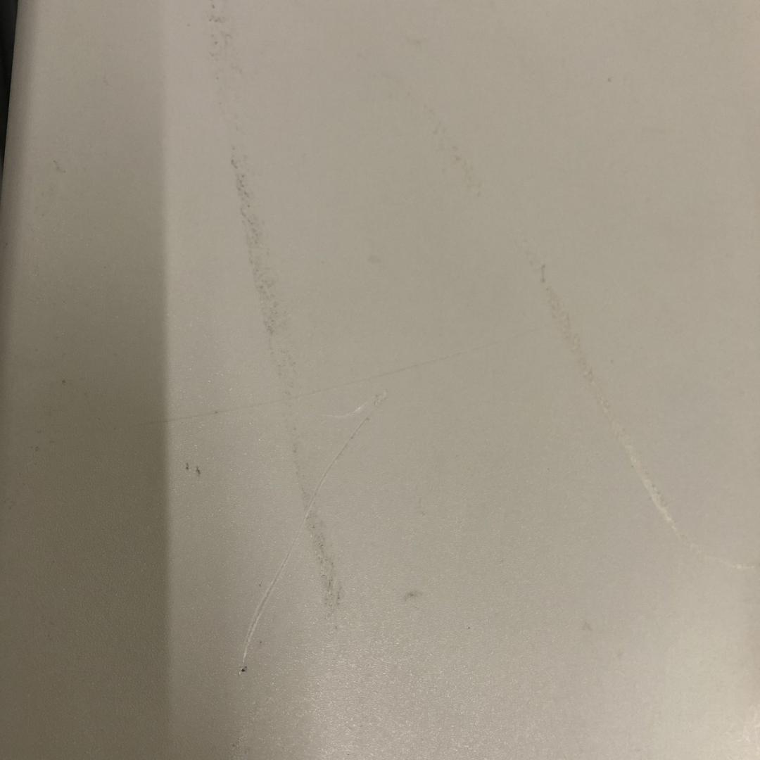 - 目立つ箇所あり傷・凹みが多数、深い傷・凹みが一部ある。(例、天板、正面、背後、サイド部分にある。)