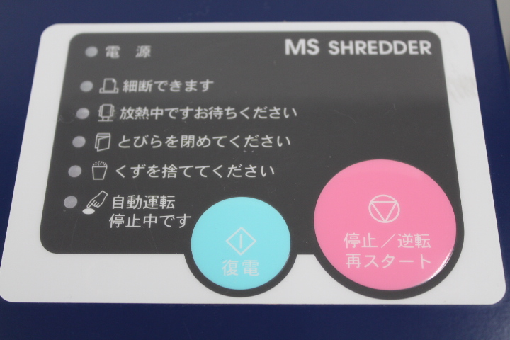 | そのほか機能 | ・細断可能物:紙類、CD/DVD、FD、MO、クリップ(28ミリ以内)、ホッチキス(NO.10以下)、カード類 |