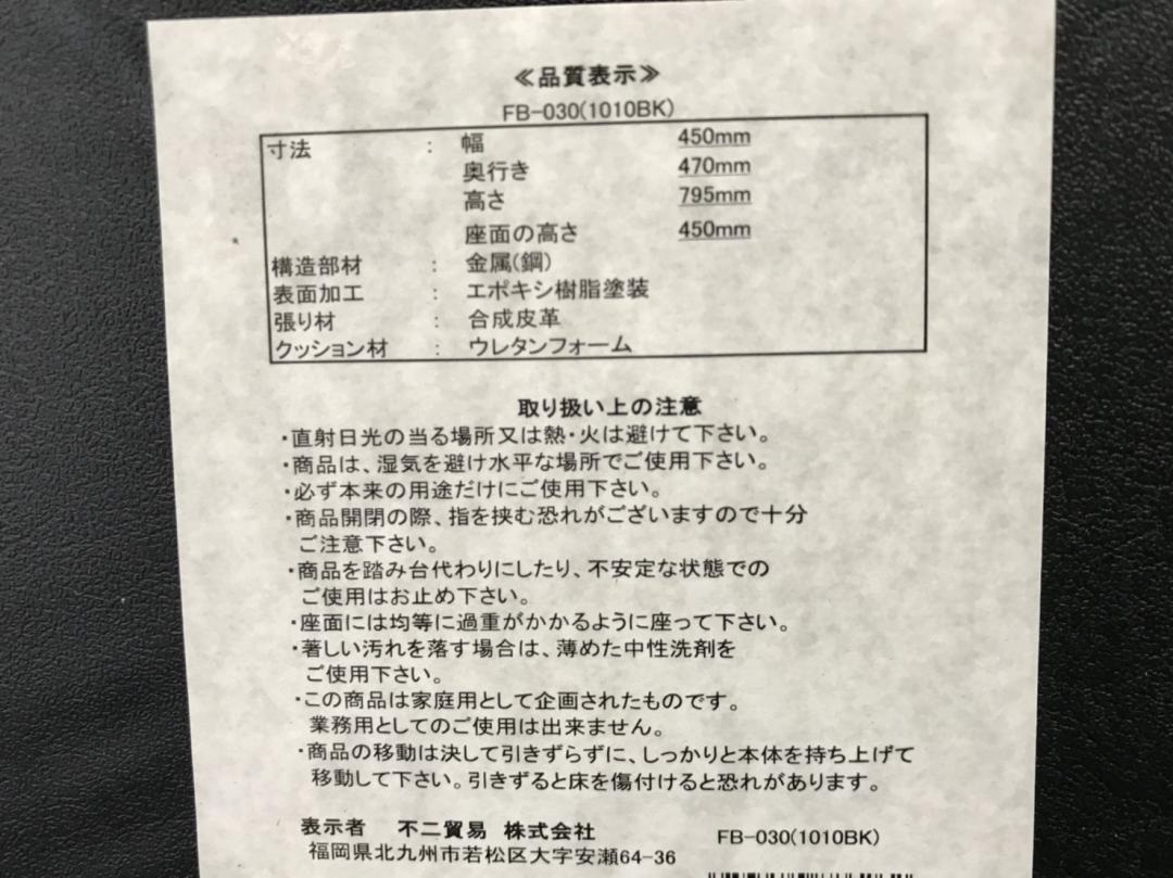 【中古】 FB-030(1010BK) 不二貿易 パイプイス・折りたたみ椅子 231869