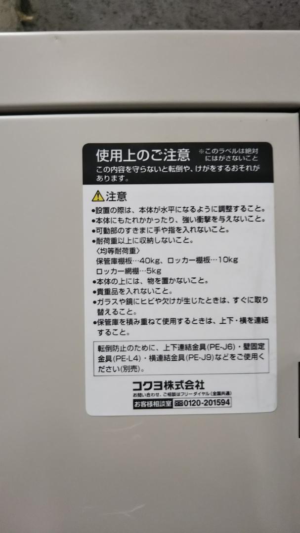 - 一部不具合ありそ引出の開閉不可、施錠不可、棚板無しといったの書庫の本来の効用を果たすための機能以外の一部が使用不可(例、扉、引出の開閉がしづらいなどがある。 )