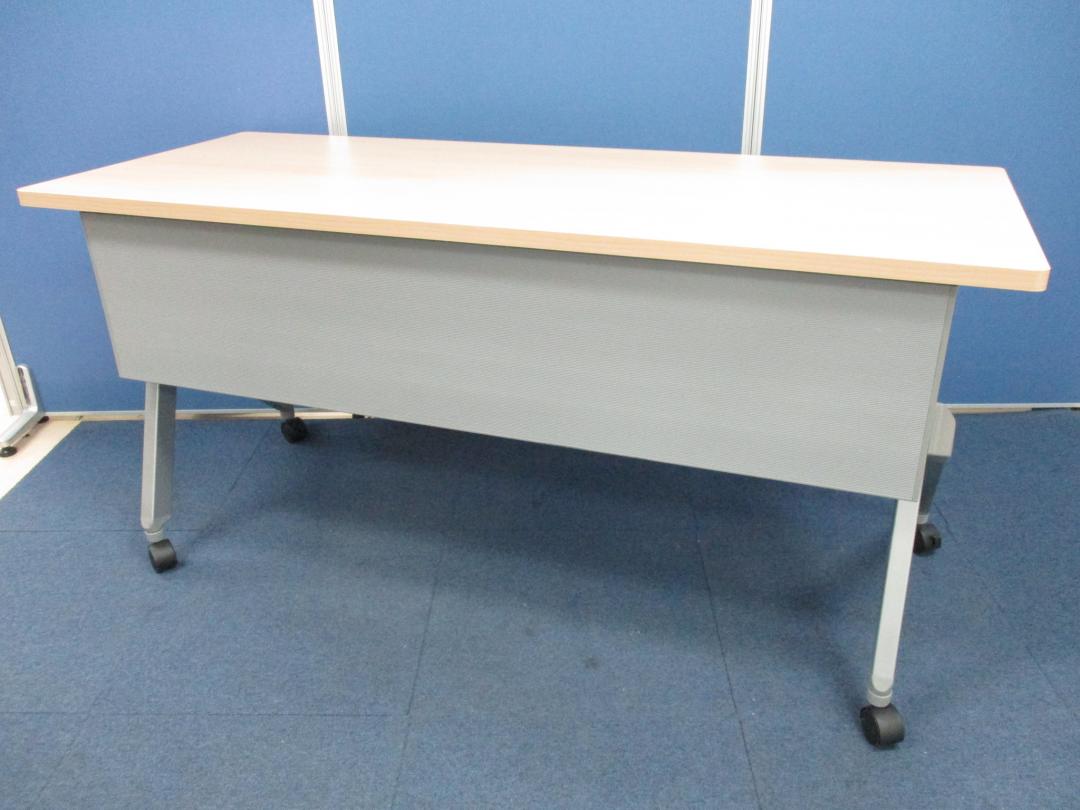 【W1500の折り畳みテーブルが入荷!】◆オカムラ/フラプター ナチュラル 木目 サイドスタックテーブル 収納 中古 博多 天神 九州最大級 オフィスバスターズ