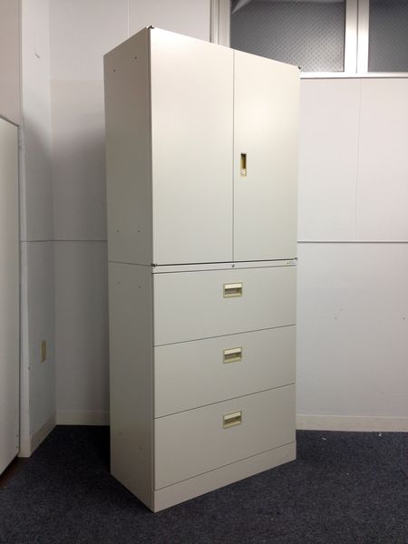 【まとめて揃います!】使い勝手の良い3枚引き違い書庫と3段ラテラルのセット!オカムラ/42シリーズ/ニューグレー/シリンダー錠【TH】【倉庫在庫品】