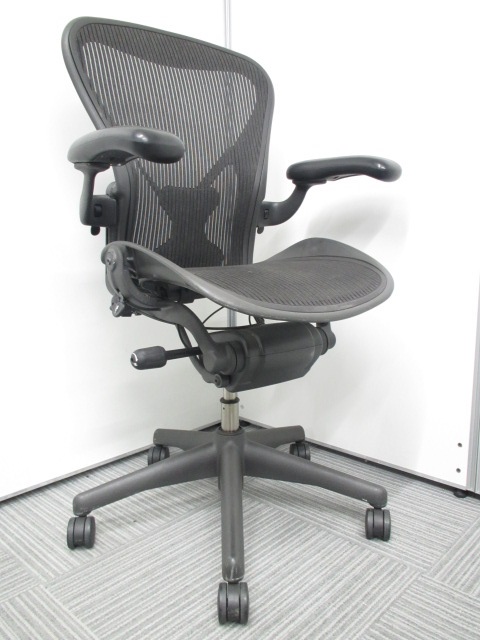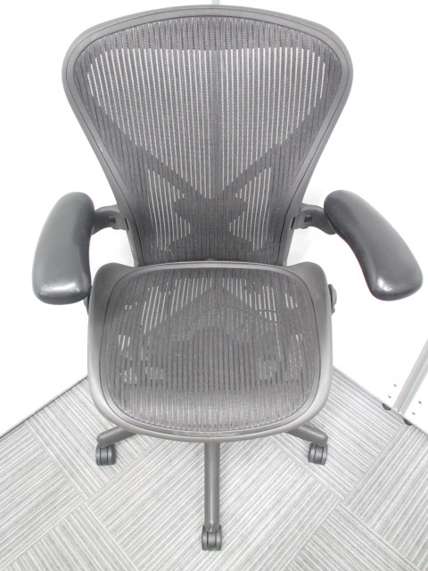 【★状態イマイチのためお安く!】■ハーマンミラー製 アーロンチェア Bサイズ 固定肘 ※キズあり・ランバーサポート無・昇降ガス圧弱めのためお安く!【訳あり特価品】