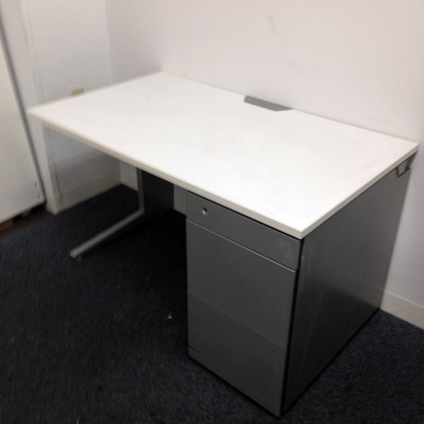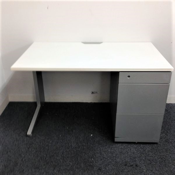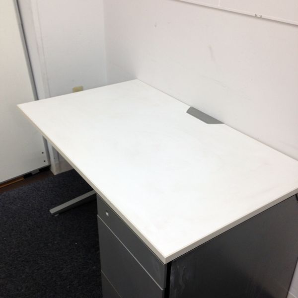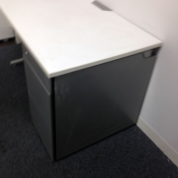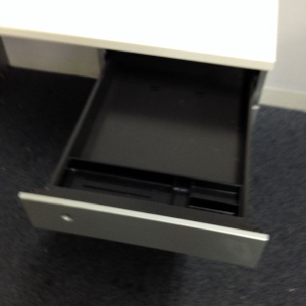シルバー×ホワイト!【ソリッドな造形が印象的!】袖引き出し付き事務デスク|ホワイト天板 オカムラ プロユニット- 名古屋千種店