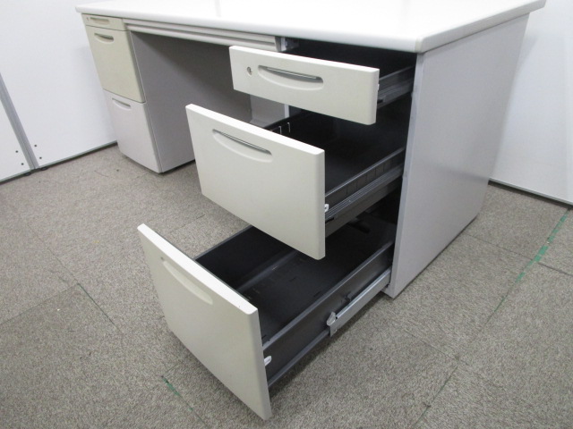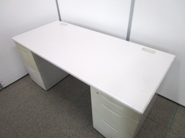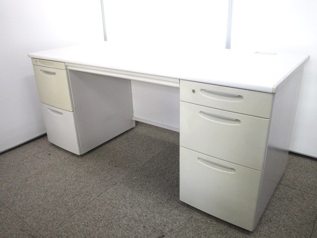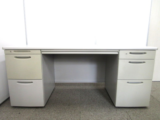 【W1600サイズ】上長用デスクにおすすめ!広々使えて収納抜群の両袖机|施錠可能【日焼けのためお安く】- 池袋店
