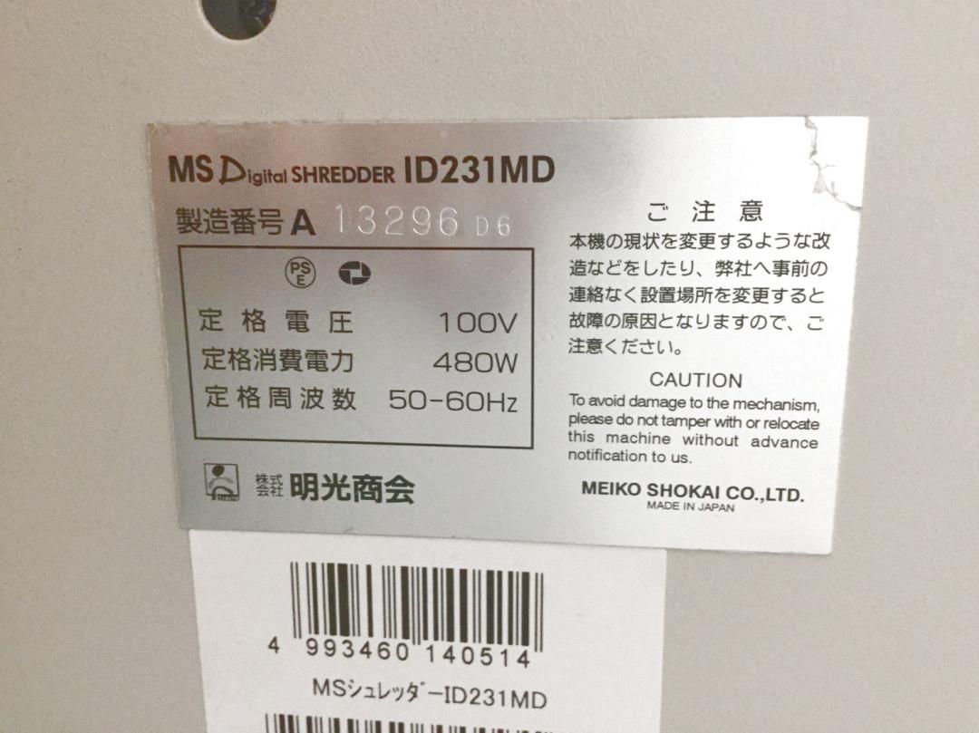 【中古】 MS-ID231MD 明光商会 シュレッダー 232200