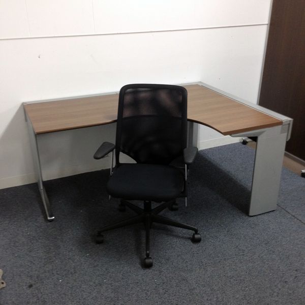 【L型机】高級感漂うデスクとそれに相応しいチェアのセット【右ラウンド】- 名古屋千種店